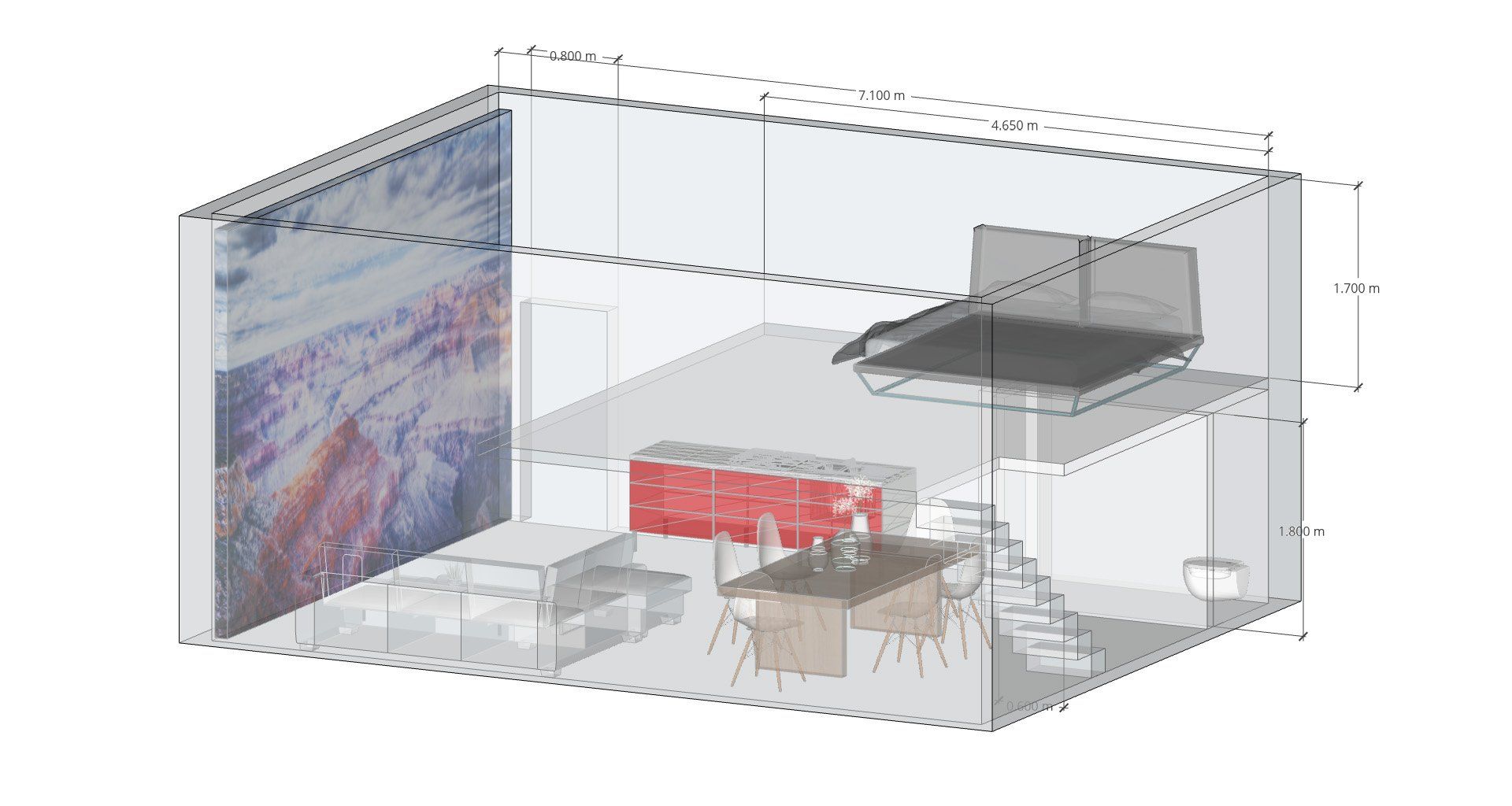 Visualisierung unter Verwendung von CAD-Technologie eines Luxusbunkers mit Galerie und LED-Panel-View.